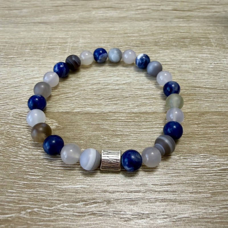 Achát botswana (matný) + Sodalit + Chalcedón - PÁNSKY náramok (Ø gul. 8 mm)