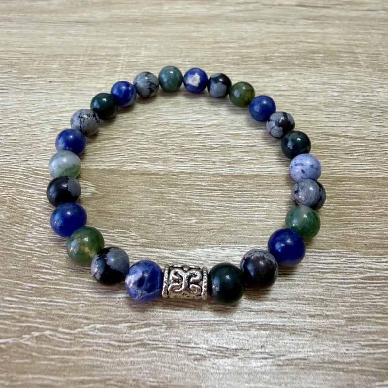 Achát machový + Sodalit + Obsidián vločkový - PÁNSKY náramok (Ø gul. 8 mm)