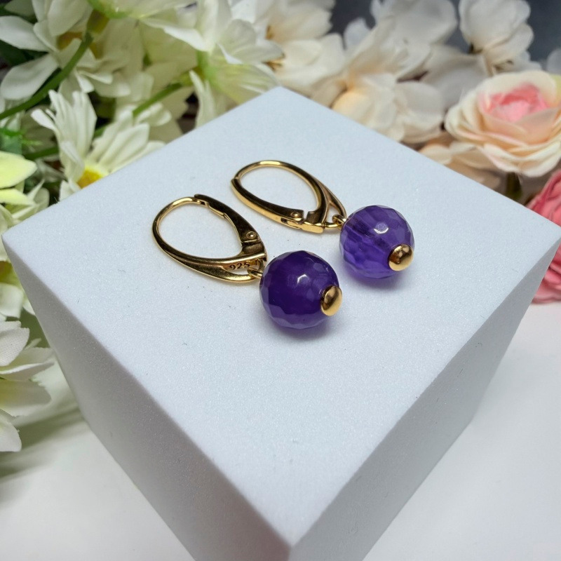 Ametyst (fazetovaný) - visiace náušnice v pozlátenom striebre (Ø gul. 8 mm)