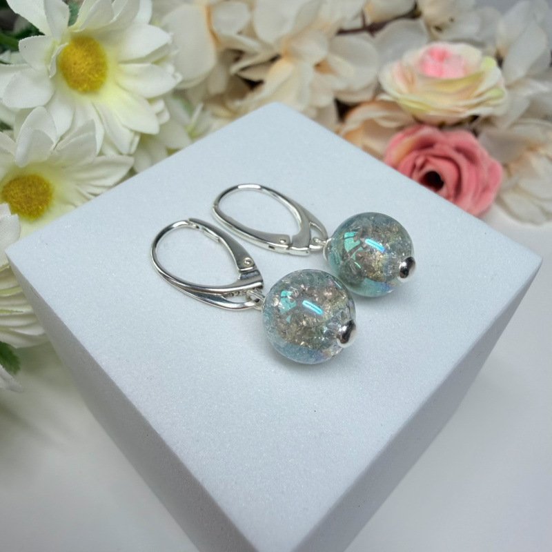 Aqua aura - visiace náušnice v striebre (Ø gul. 10 mm)