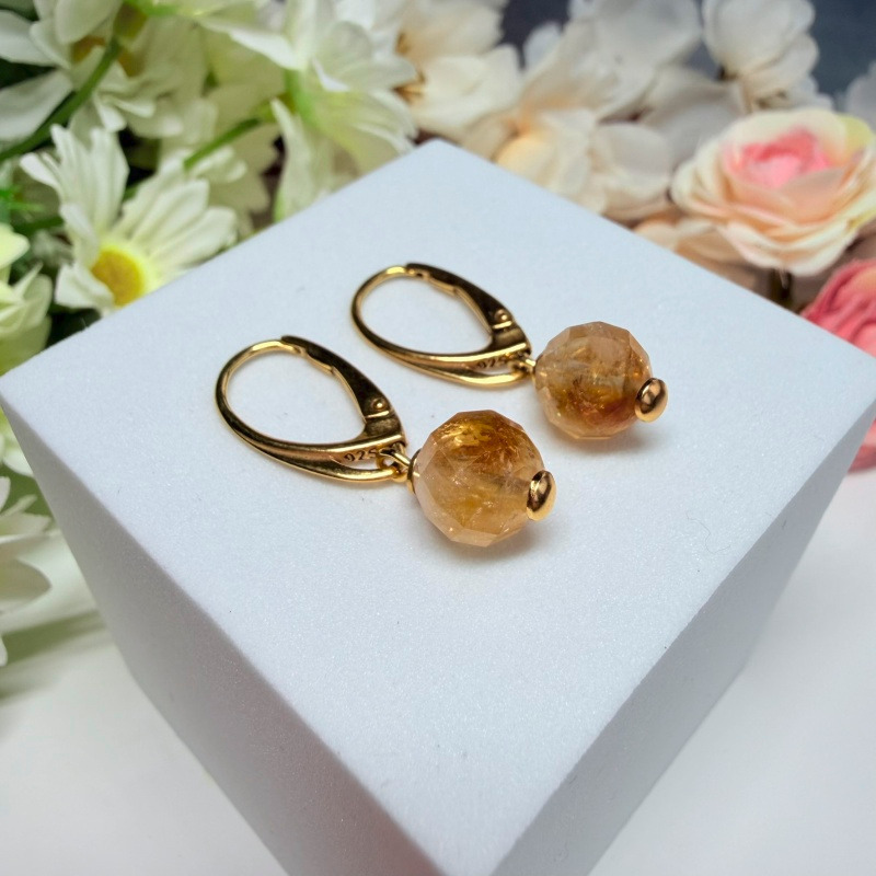 Citrín (fazetovaný) - visiace náušnice v pozlátenom striebre (Ø gul. 8 mm)