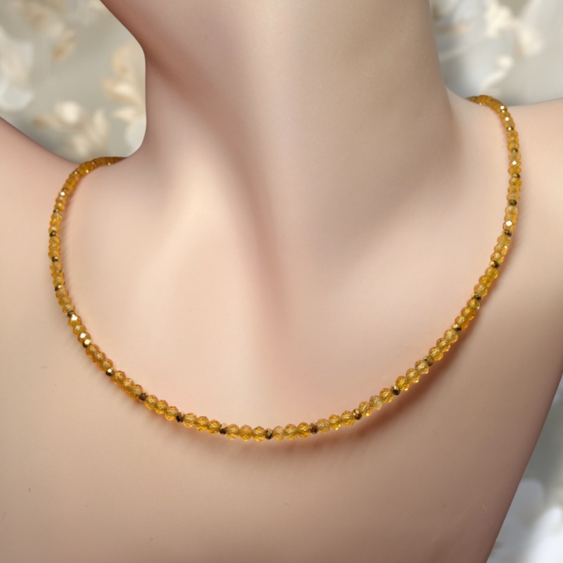 Granát mandarinkový (fazetovaný) + Hematit (pokovený) - náhrdelník 40+2 cm (Ø gul. 2.5x2 mm)
