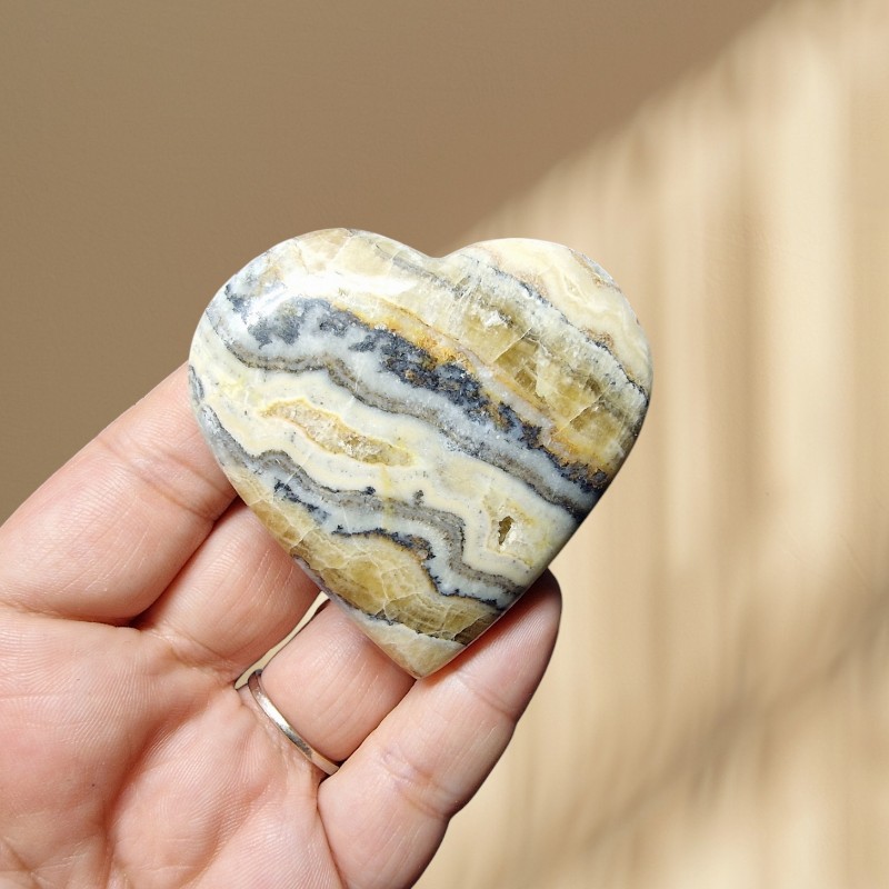 Kalcit zebra - srdce hmatka 103 g (v.: 5.9 cm)