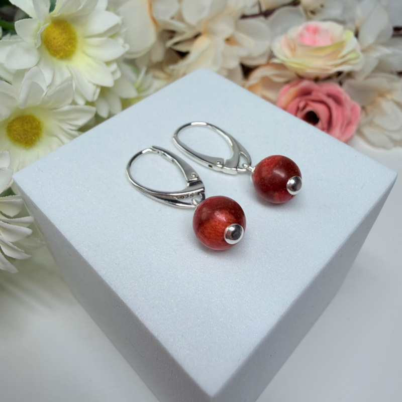 Korál hubový - visiace náušnice v striebre (Ø gul. 8 mm)