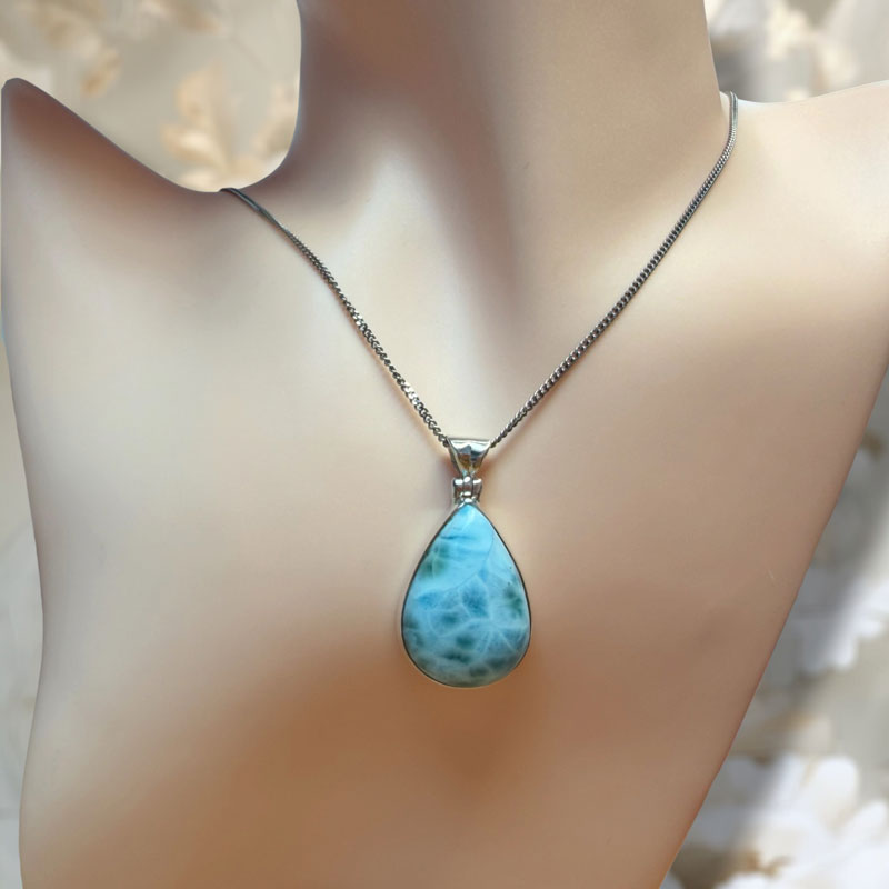 – Larimar je vzácna modrá odroda kremičitanu pectolite, ktorý sa nachádza len v Dominikánskej republike a v Karibiku