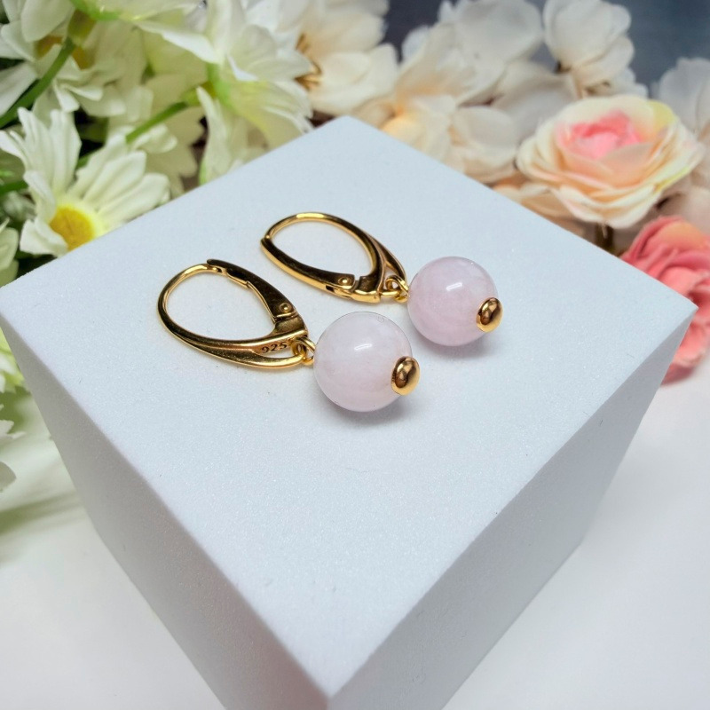 Morganit - visiace náušnice v pozlátenom striebre (Ø gul. 8 mm)