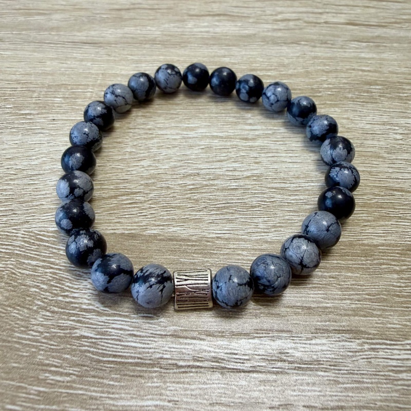 Obsidián vločkový - PÁNSKY náramok (Ø gul. 8 mm)