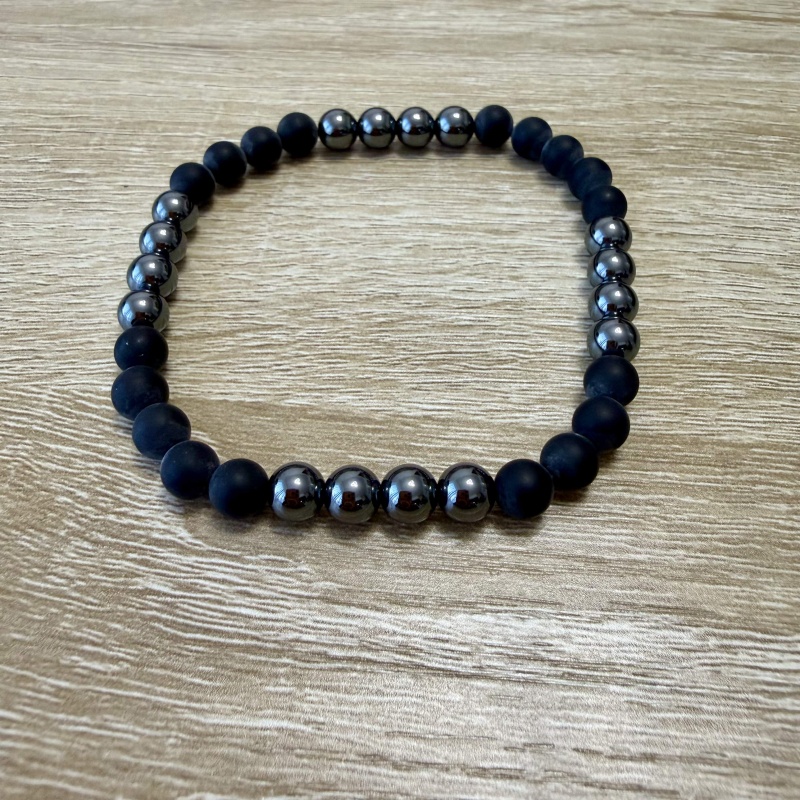 Ónyx (matný) + Hematit - PÁNSKY náramok (Ø gul. 6 mm)