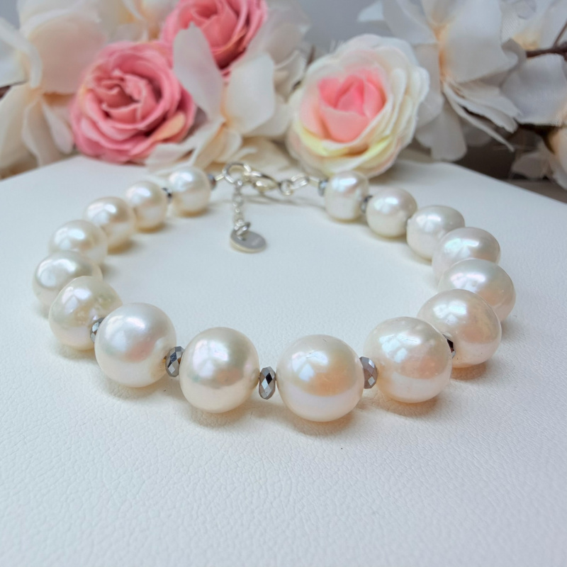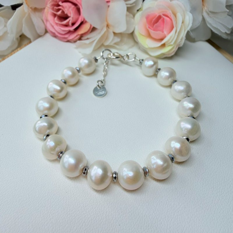 Perly sladkovodné krémové + Hematit - náramok Ø 8 mm