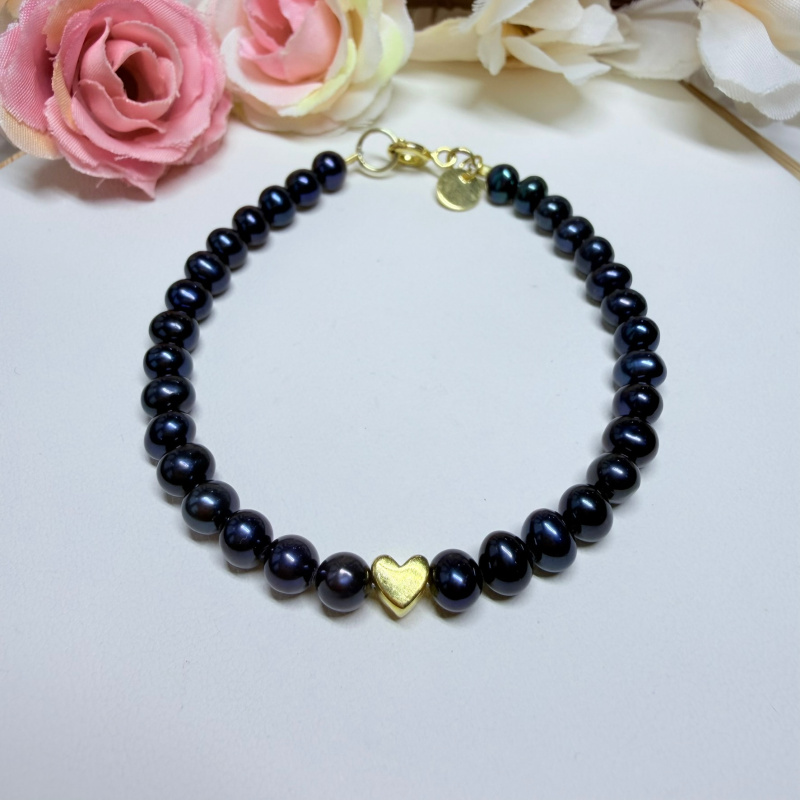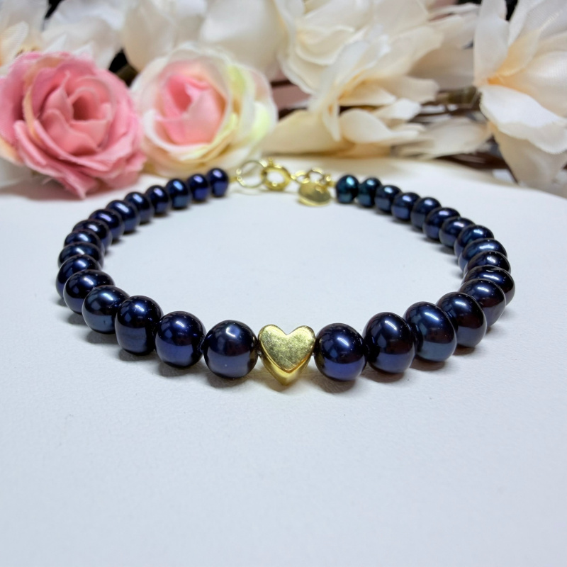 Perly sladkovodné - náramok so srdiečkom 17.5 cm (Ø perly 5.5 mm)