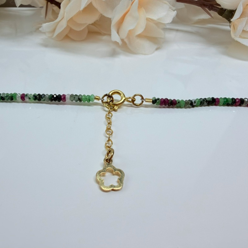 Rubín v zoisite (fazetovaný) + Hematit (pokovený) + Perla - náhrdelník 41.5+2 cm (Ø gul. 2x1 mm)