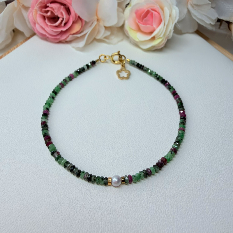 Rubín v zoisite (fazetovaný) + Hematit (pokovený) + Perla - náramok 18 cm (Ø gul. 2x1 mm)