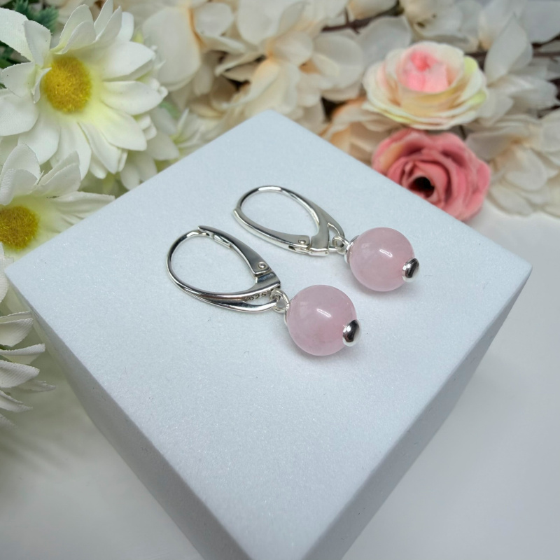 Ruženín - visiace náušnice v striebre (Ø gul. 8 mm)