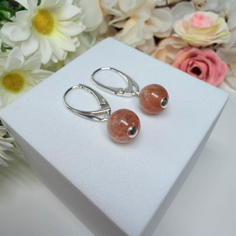 Slnečný kameň - visiace náušnice v striebre (Ø gul. 8 mm)