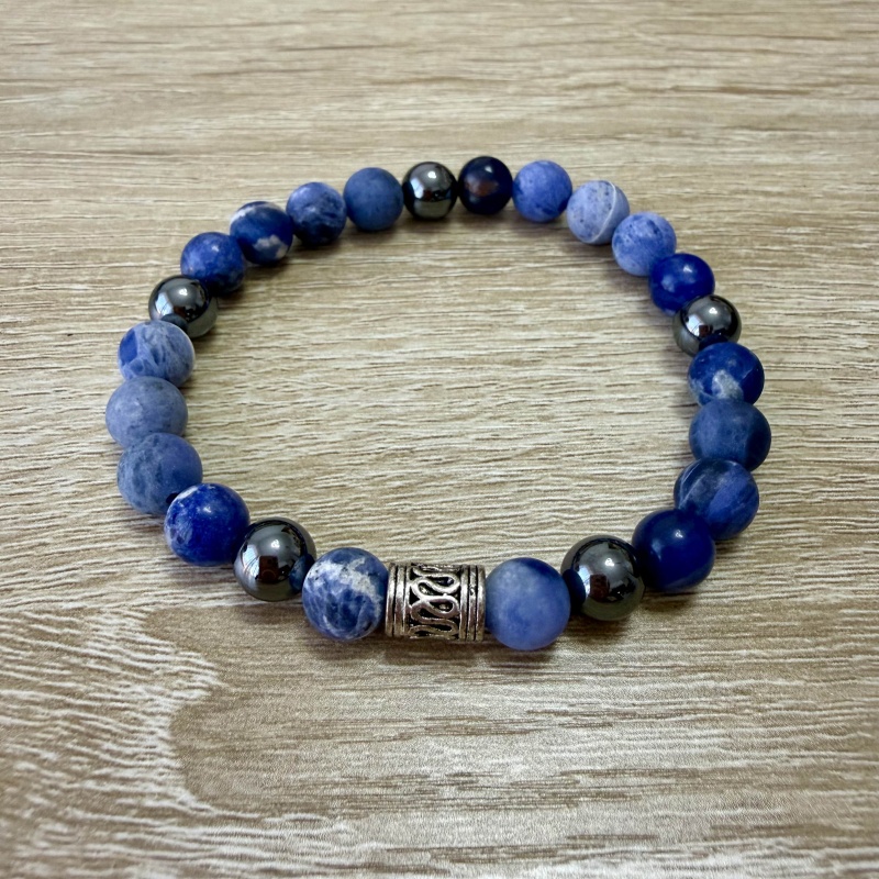 Sodalit (matný) + Hematit - PÁNSKY náramok (Ø gul. 8 mm)