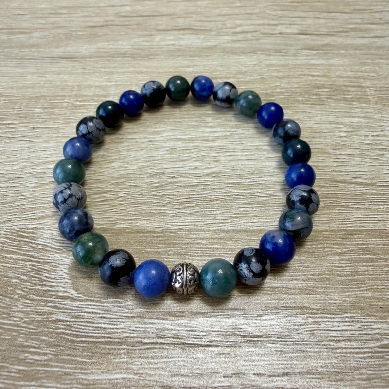 Achát machový + Sodalit + Obsidián vločkový - PÁNSKY náramok (Ø gul. 8 mm)