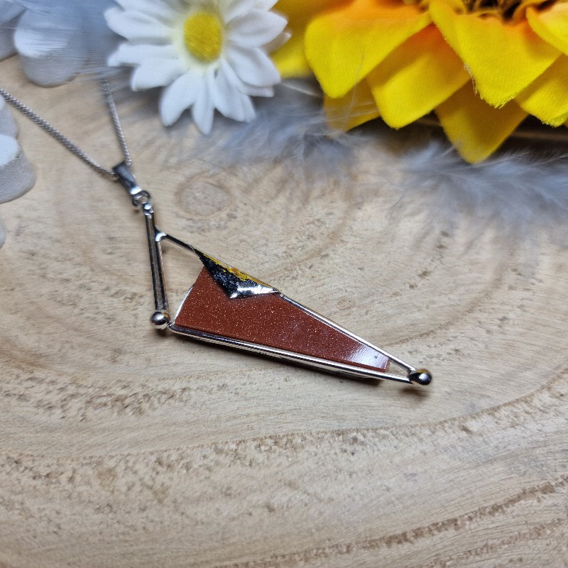 Avanturín zlatý (syntetický kameň) - prívesok v tombaku + Rh (4.46g)