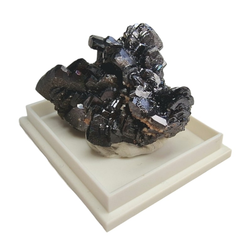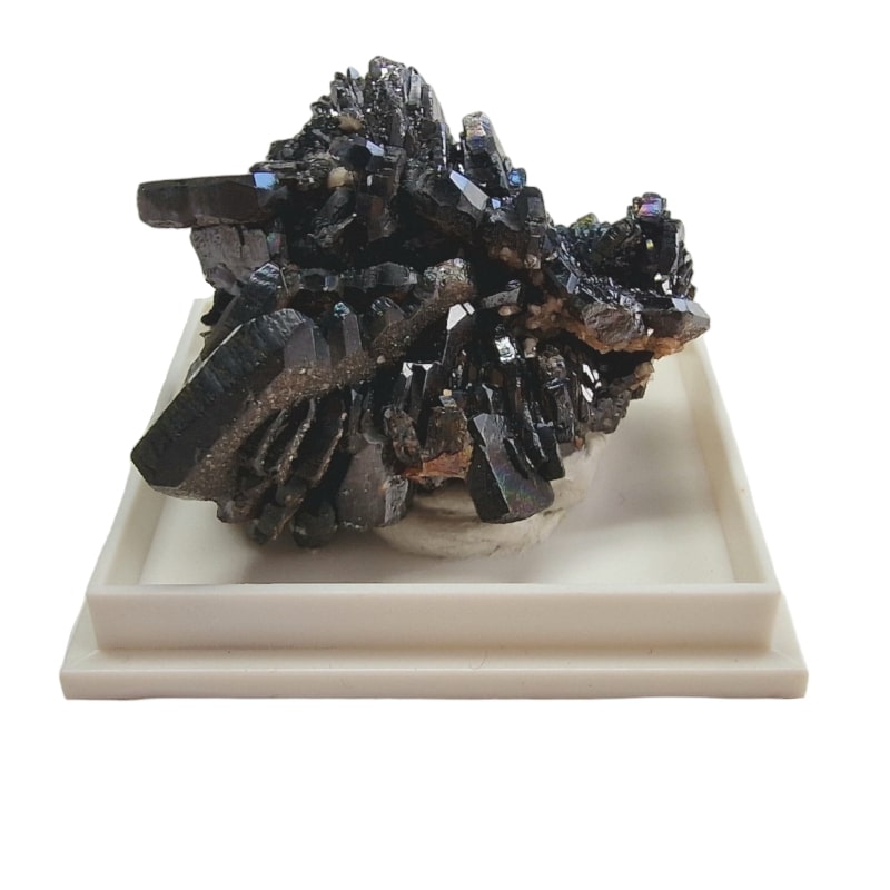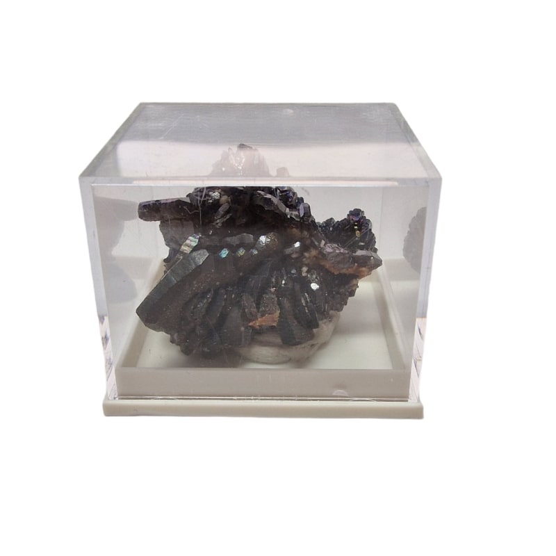 Zbierkový minerál Descloizit, ktorý je nalepený na lepiacej gume.