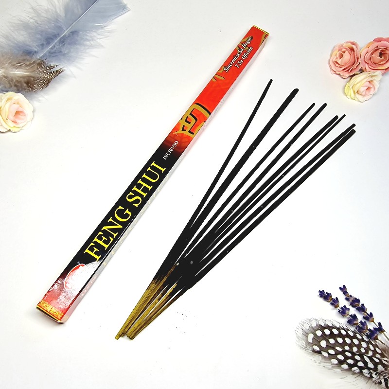 Ručne vyrábané FENG SHUI vonné tyčinky sú jedinečnou zmesou niekoľkých zložiek, ako sú vzácne byliny, kvety, extrakty z listov, aromatické rastliny, živice, éterické oleje a korenie. Ich hlboká mystifikujúca aróma vytvára atmosféru pozitívnej energie, ktorá znižuje stres a pomáha uvoľniť myseľ, telo i dušu. Prírodné zmesi ingrediencií zmiešaných v presných pomeroch uvoľňujú vôňu, ktorá zanechá každého človeka pokojného a uvoľneného. Môžu byť použité vo vašich domovoch, kanceláriách, obchodoch, pri každodennej modlitbe, meditácii alebo joge. Vonné tyčinky pôsobia tiež ako organický repelent, ktorý odháňa hmyz