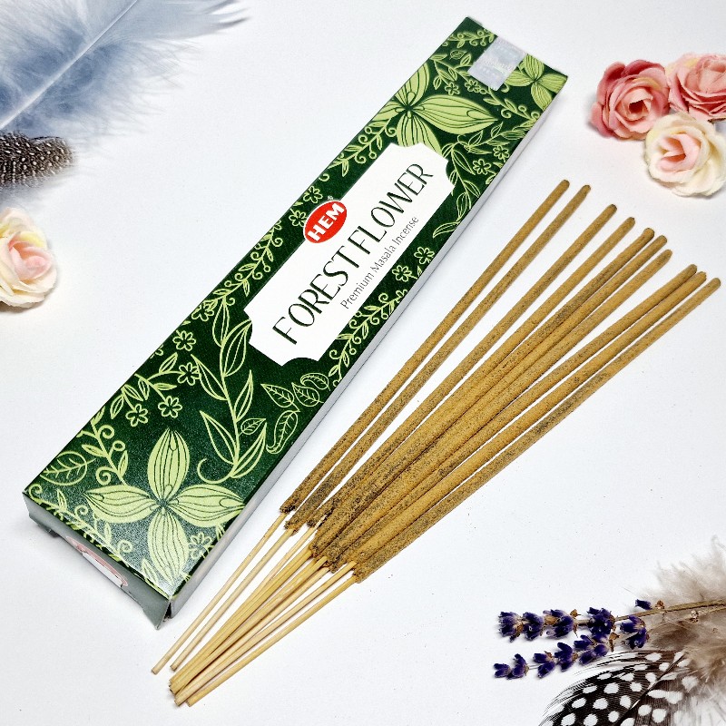 Ručne vyrábané FOREST FLOWER vonné tyčinky sú jedinečnou zmesou niekoľkých zložiek, ako sú vzácne byliny, kvety, extrakty z listov, aromatické rastliny, živice, éterické oleje a korenie. Ich hlboká mystifikujúca aróma vytvára atmosféru pozitívnej energie, ktorá znižuje stres a pomáha uvoľniť myseľ, telo i dušu. Prírodné zmesi ingrediencií zmiešaných v presných pomeroch uvoľňujú vôňu, ktorá zanechá každého človeka pokojného a uvoľneného. Môžu byť použité vo vašich domovoch, kanceláriách, obchodoch, pri každodennej modlitbe, meditácii alebo joge. Vonné tyčinky pôsobia tiež ako organický repelent, ktorý odháňa hmyz