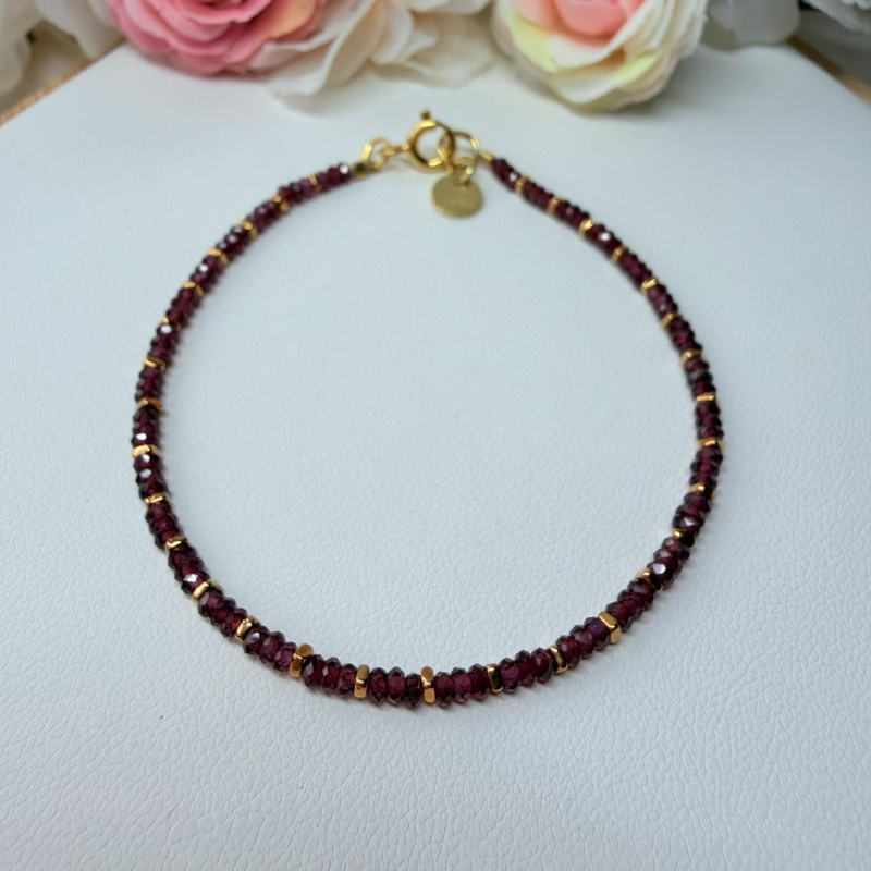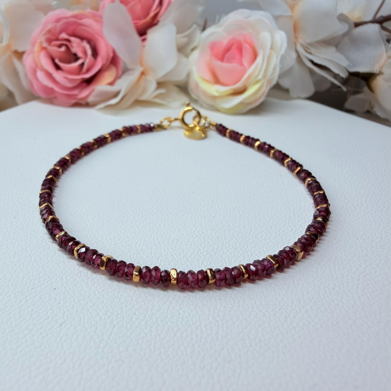 Granát (fazetovaný) + Hematit (pokovený) - náramok 18 cm (Ø gul. 2x1 mm)