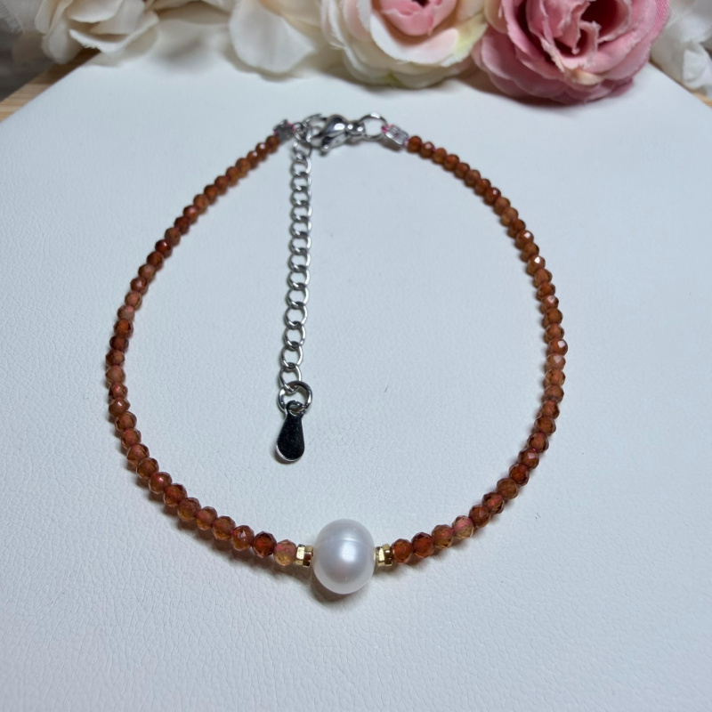 Hessonit (fazetovaný) + Perla - náramok so zapínaním z chirurgickej ocele (gul. Ø 2 mm)