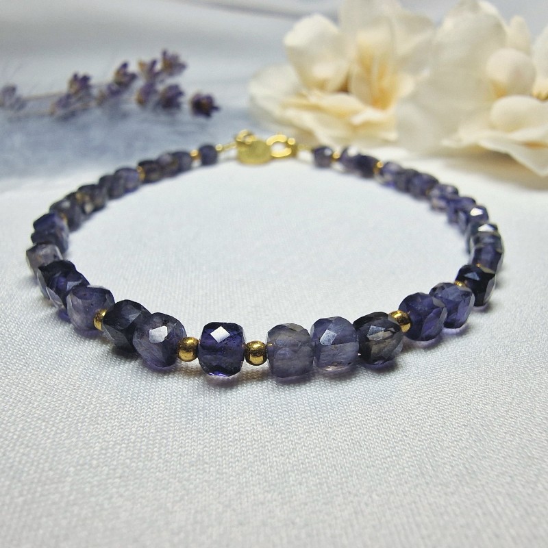 Iolit (fazetovaný) - náramok 19.5 cm (Ø gul. 4x4 mm)