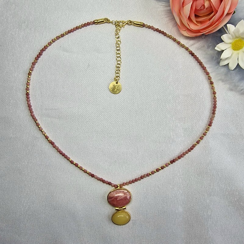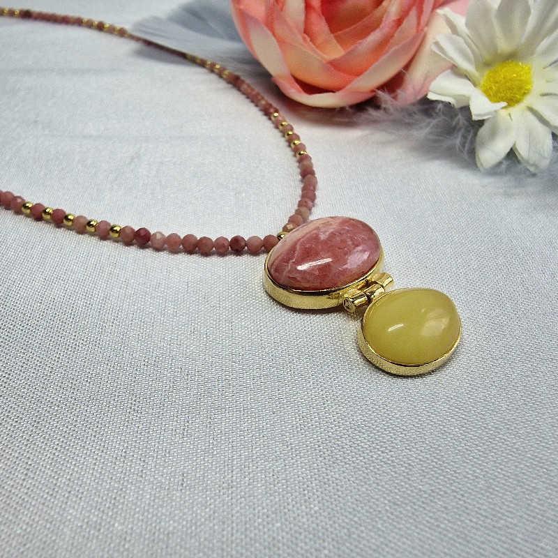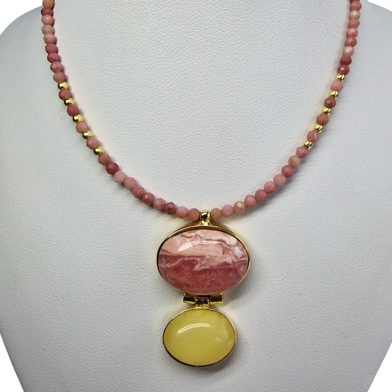 Jantár + Rodochrozit (fazetovaný) - náhrdelník 12.04g