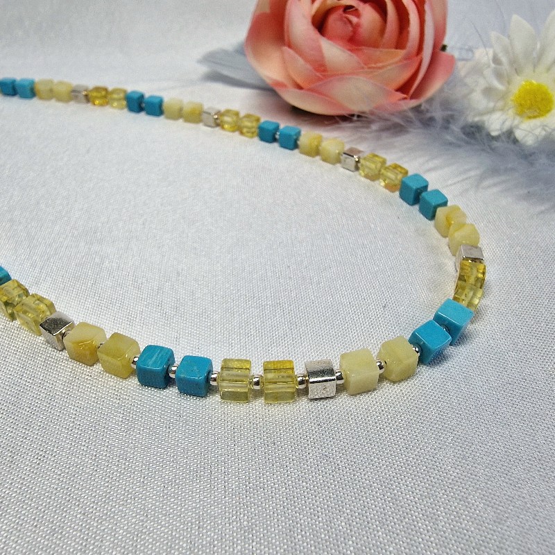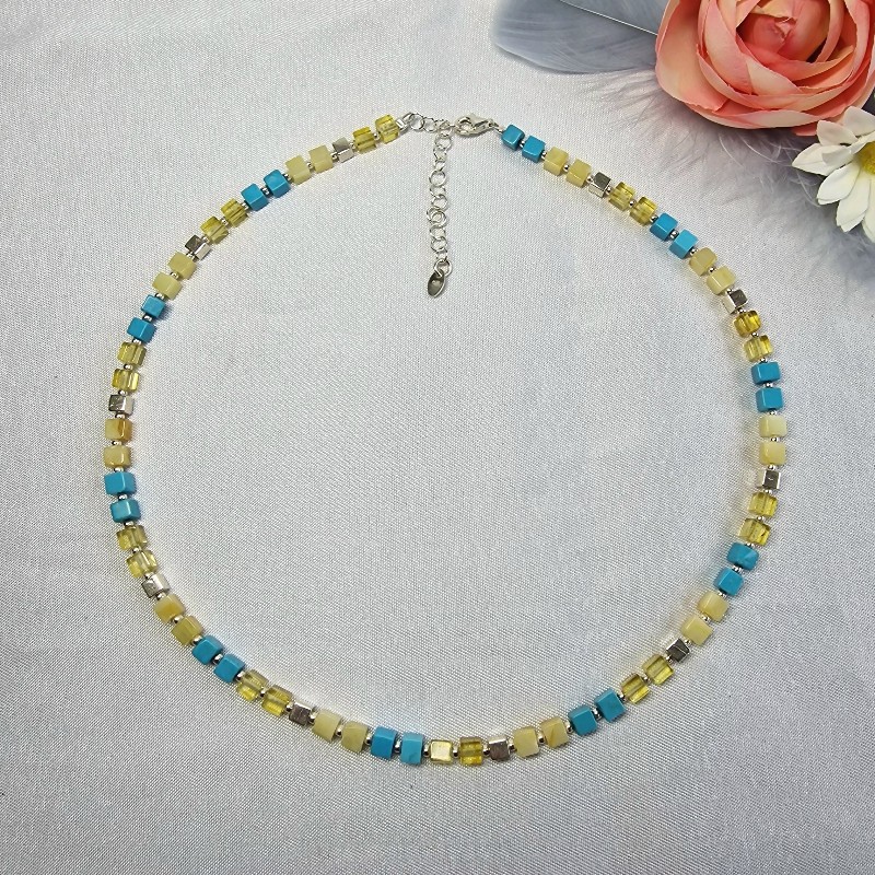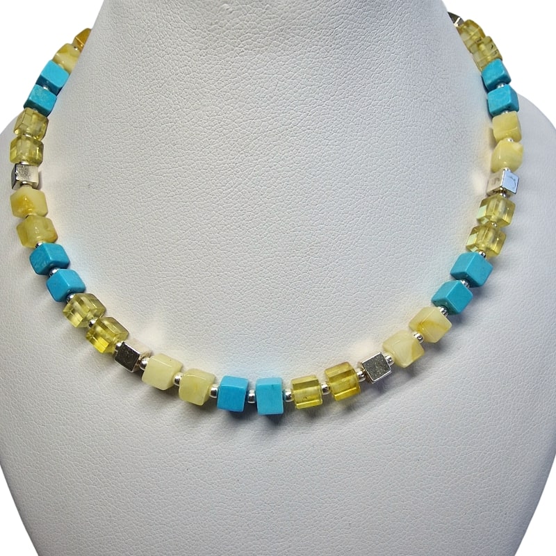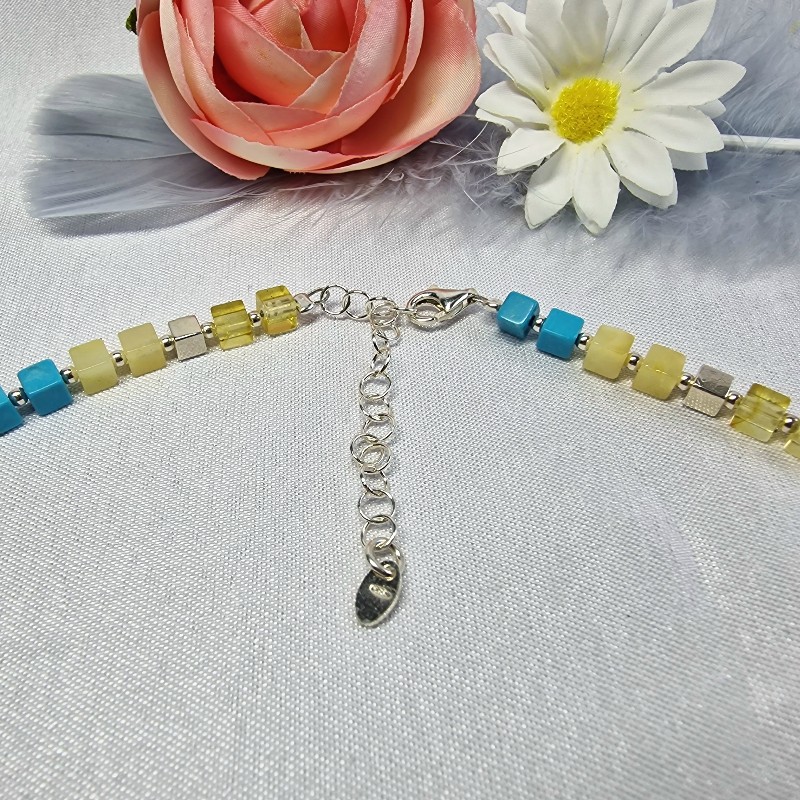Jantár + Tyrkenit - náhrdelník (41+5 cm - 12.62g)