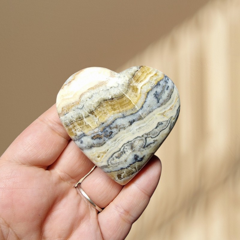Kalcit zebra - srdce hmatka 103 g (v.: 5.9 cm)