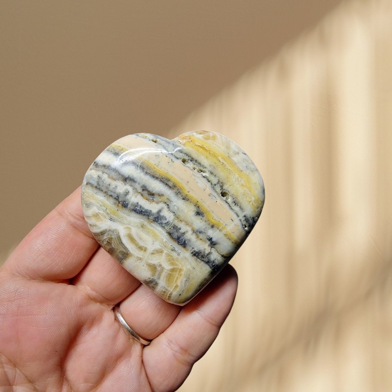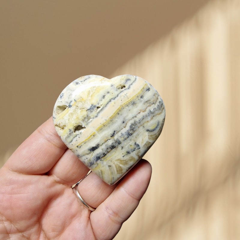 Kalcit zebra - srdce hmatka 91 g (v.: 5.7 cm)