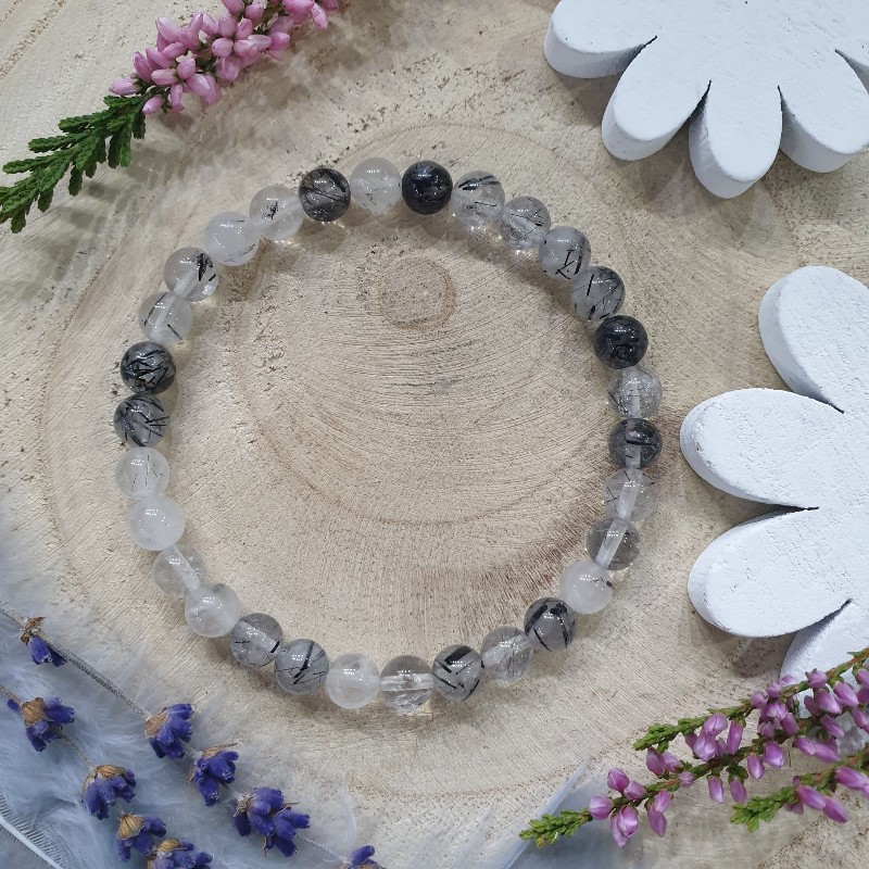 Krištáľ s turmalínom - náramok (Ø gul. 6 mm)
