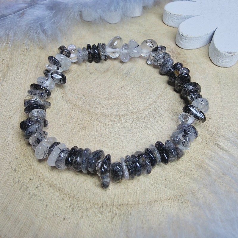 Krištáľ s turmalínom - náramok sekaný (1ks)