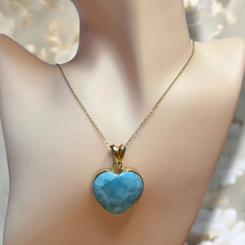Larimar - prívesok srdce v pozlátenom striebre Ag925 (12.19 g)