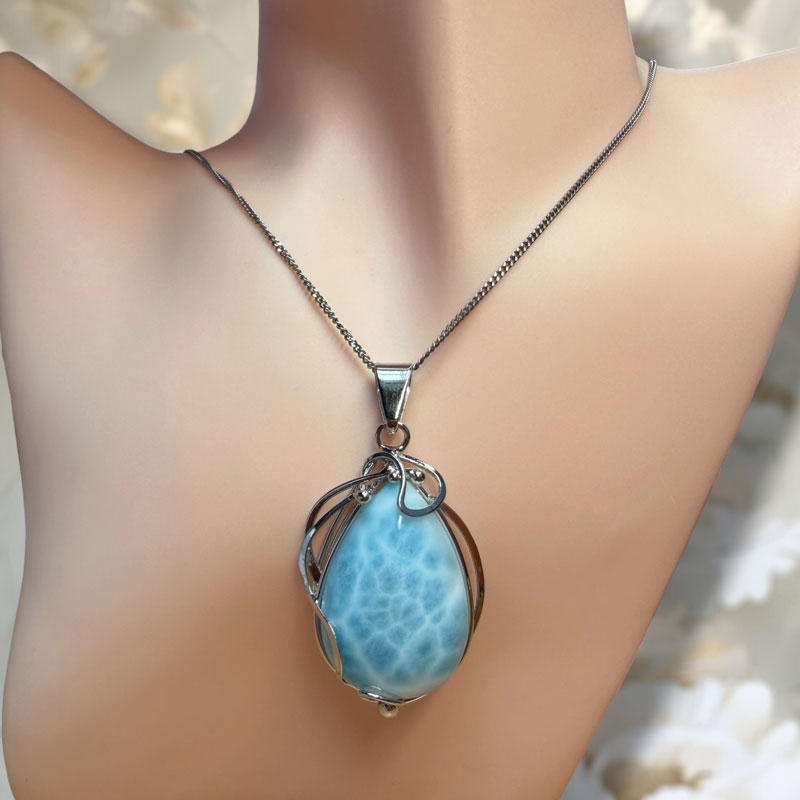 – Larimar je vzácna modrá odroda kremičitanu pectolite, ktorý sa nachádza len v Dominikánskej republike a v Karibiku