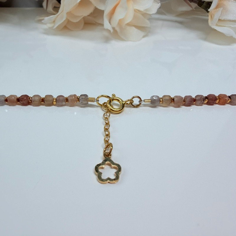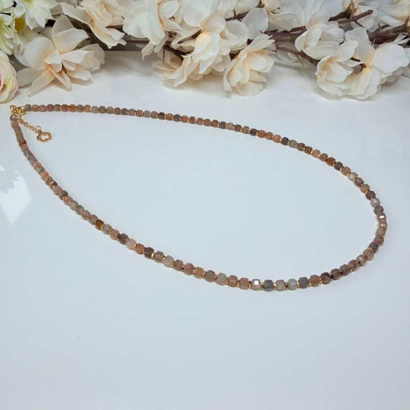 Mesačný kameň (multicolor/fazetovaný) + Hematit (pokovený) - náhrdelník 43+2 cm (Ø gul. 3x3 mm)