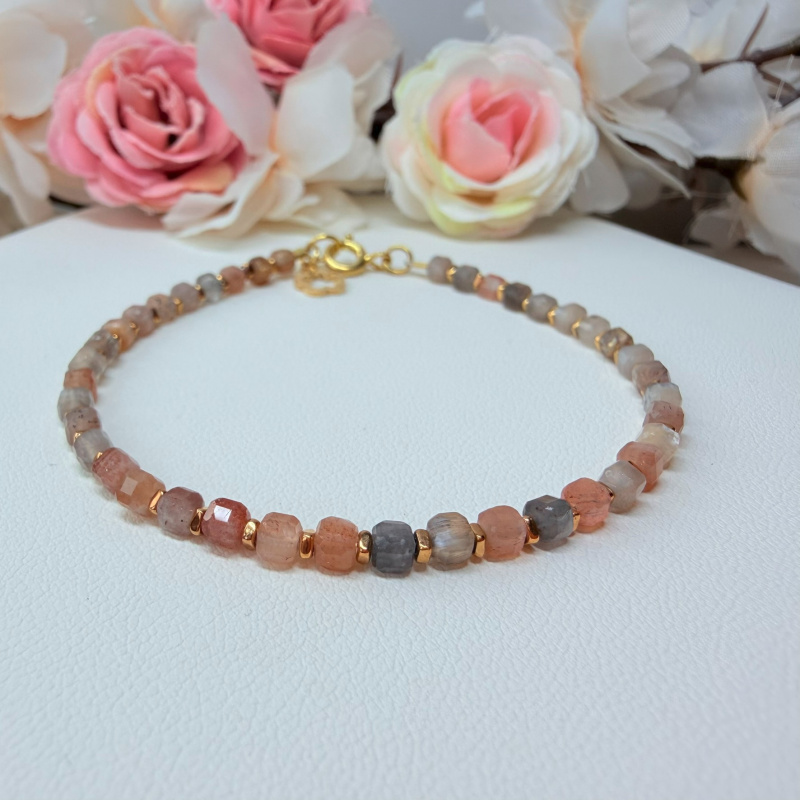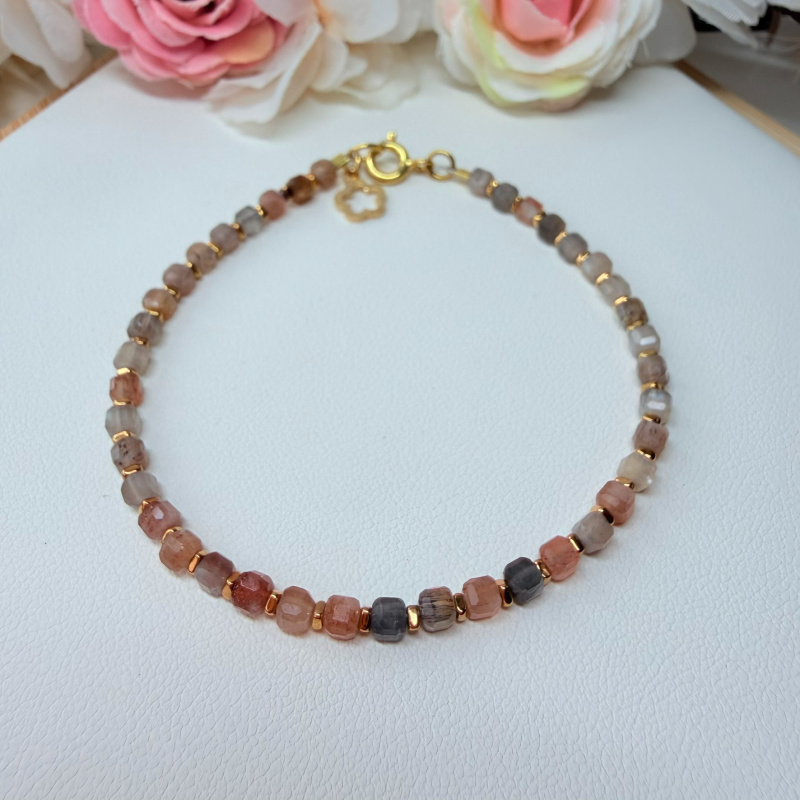 Mesačný kameň (multicolor/fazetovaný) + Hematit (pokovený) - náramok 17.5 cm (Ø gul. 3x3 mm)
