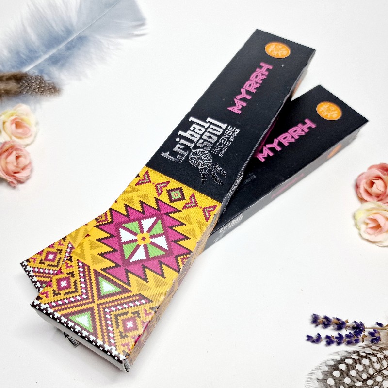 Ručne vyrábané MYRHA vonné tyčinky sú jedinečnou zmesou niekoľkých zložiek, ako sú vzácne byliny, kvety, extrakty z listov, aromatické rastliny, živice, éterické oleje a korenie. Ich hlboká mystifikujúca aróma vytvára atmosféru pozitívnej energie, ktorá znižuje stres a pomáha uvoľniť myseľ, telo i dušu. Prírodné zmesi ingrediencií zmiešaných v presných pomeroch uvoľňujú vôňu, ktorá zanechá každého človeka pokojného a uvoľneného. Môžu byť použité vo vašich domovoch, kanceláriách, obchodoch, pri každodennej modlitbe, meditácii alebo joge. Vonné tyčinky pôsobia tiež ako organický repelent, ktorý odháňa hmyz