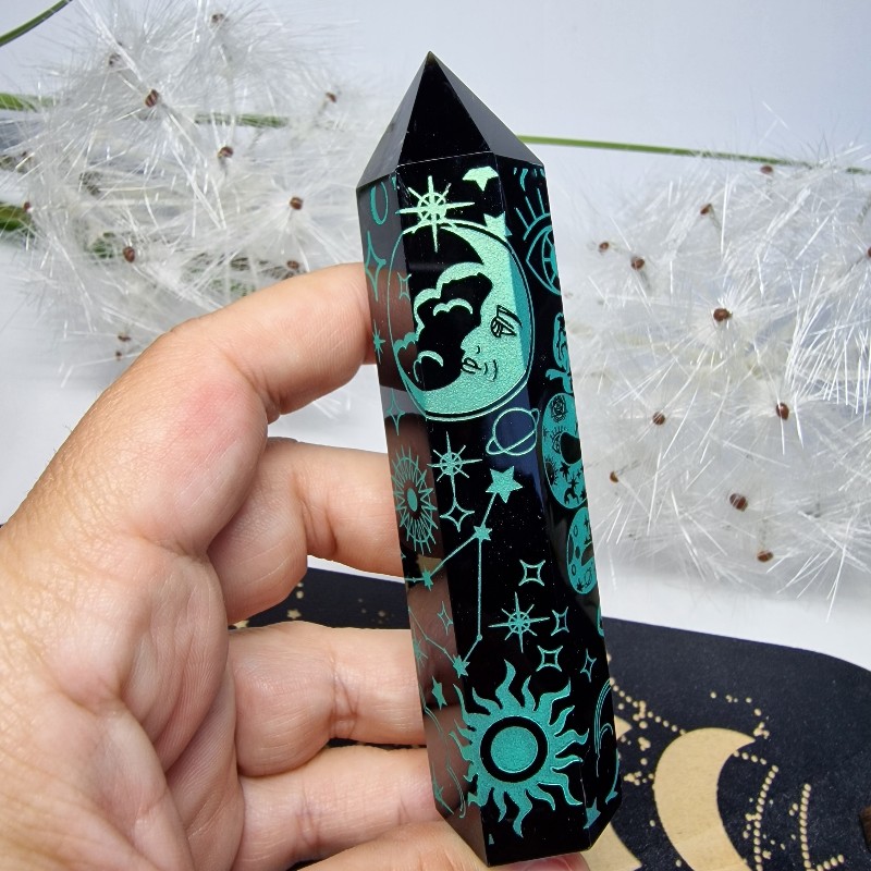 – posilňuje a podporuje meditácie, duchovný rast a schopnosti, vízie, jasnovidnosť, uzemňuje, vyleštený sa používa na veštenie