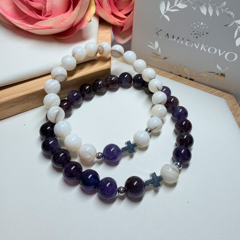 Perleť + Ametyst - PARTNERSKÉ náramky (gul. Ø 8 mm)