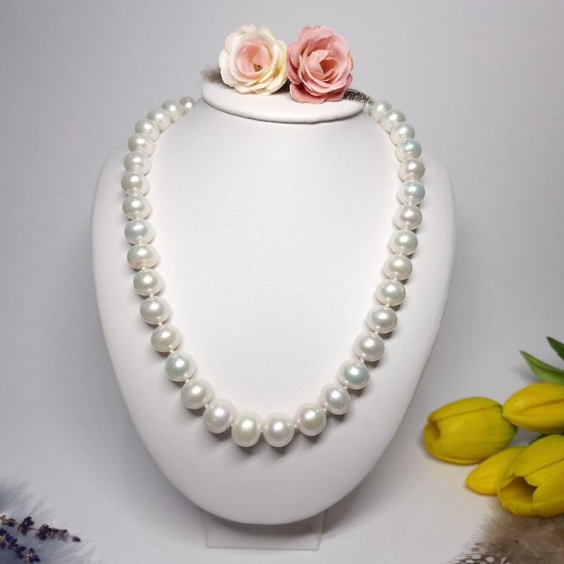 Perly sladkovodné - náhrdelník uzličkovaný/stupňovaný 47 cm (Ø perly 11-13 mm)