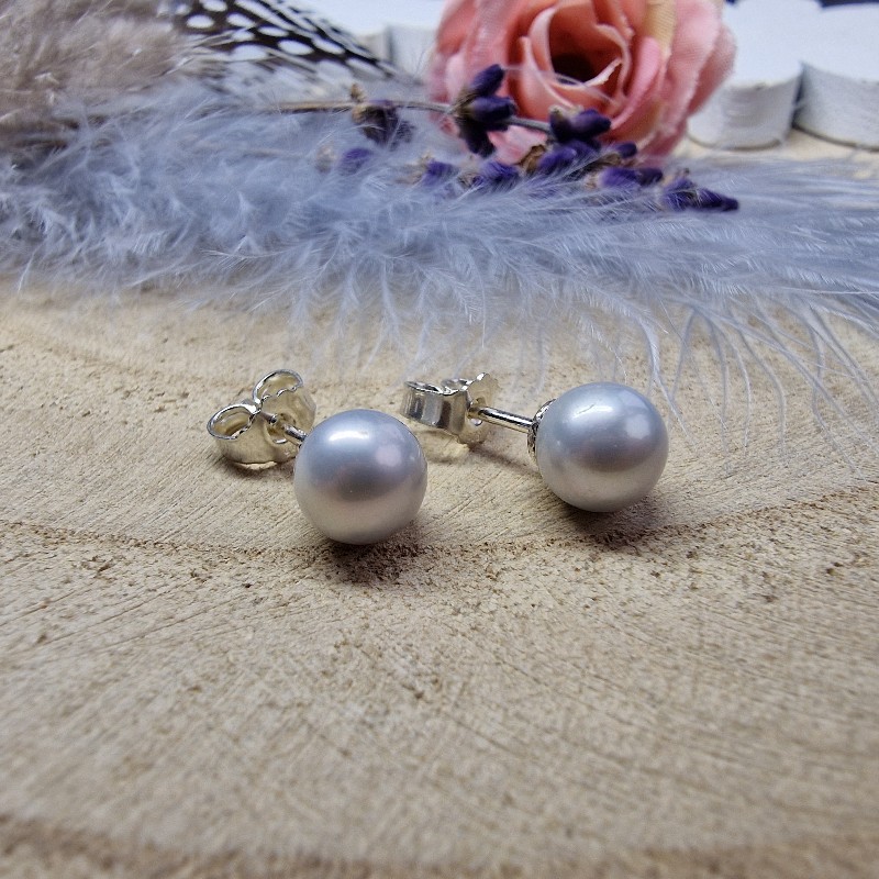 Perly sladkovodné (sivé) - náušnice napichovacie (Ø gul. 7 mm)