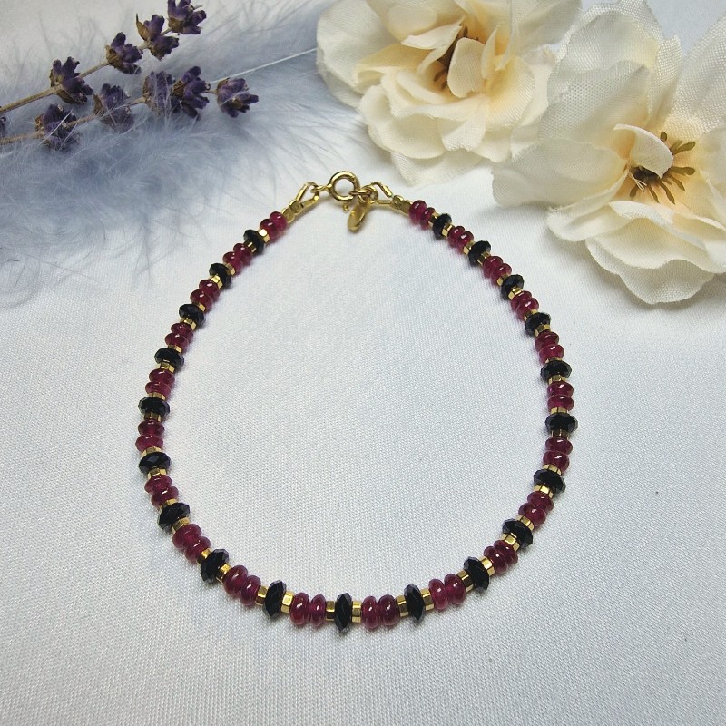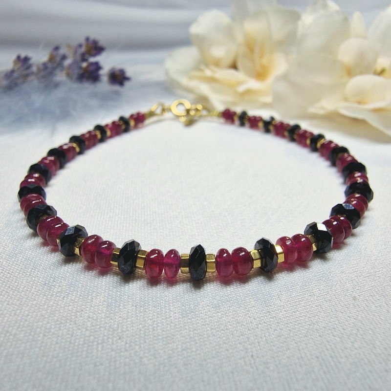 Rubín+Spinel (fazetovaný) - náramok 18 cm (Ø gul. 3-4x2 mm)