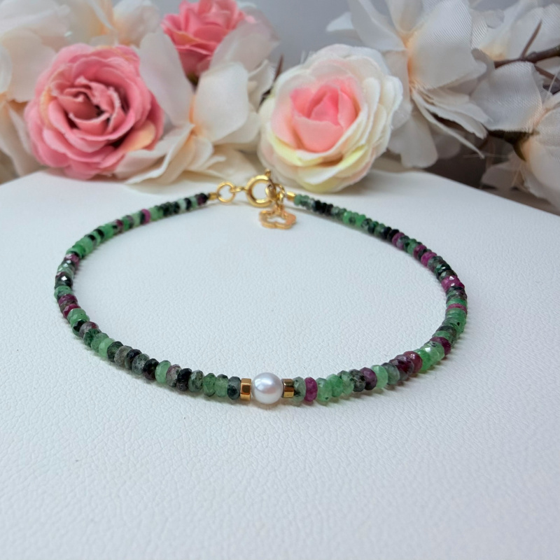Rubín v zoisite (fazetovaný) + Hematit (pokovený) + Perla - náramok 18 cm (Ø gul. 2x1 mm)