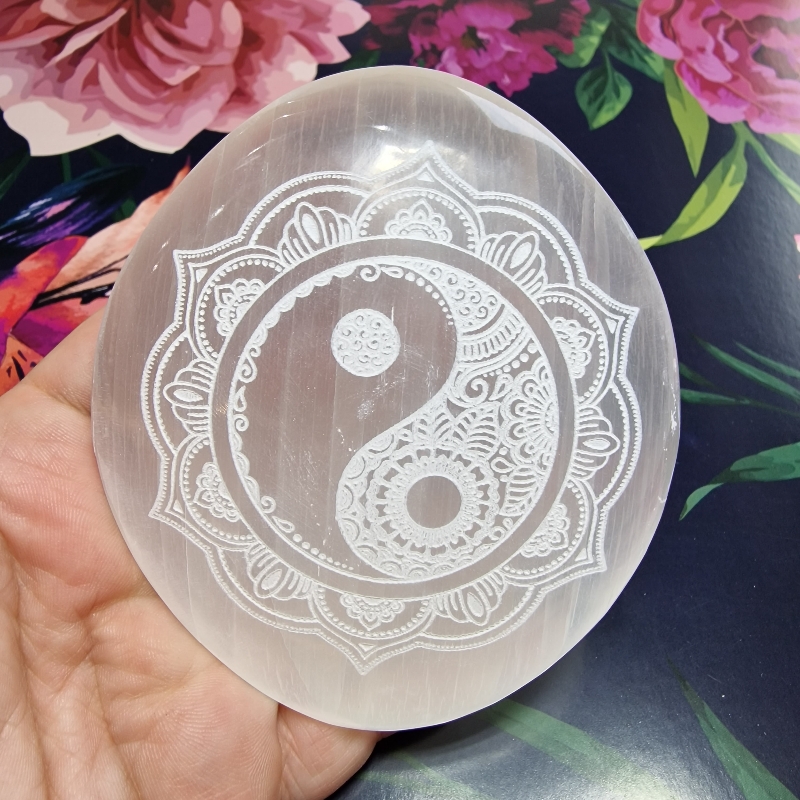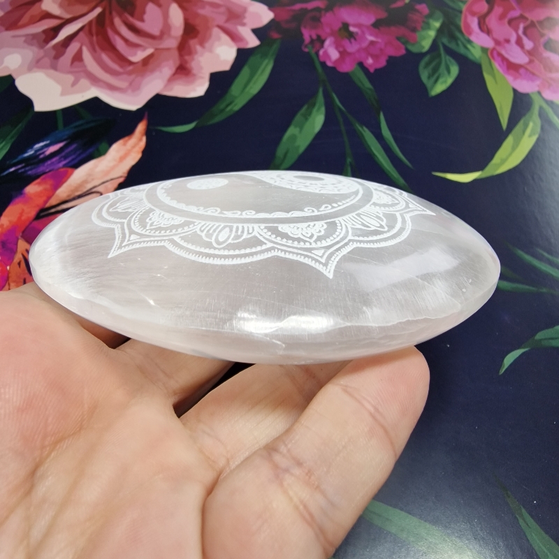 Selenit - placka mandala + JING JANG (v: 9.5 cm)