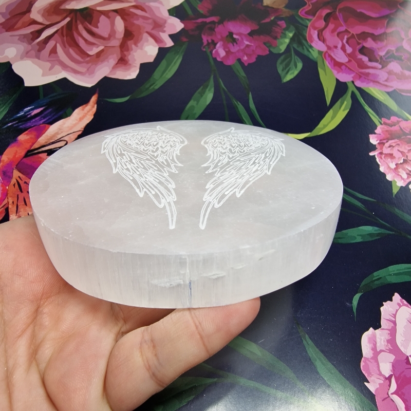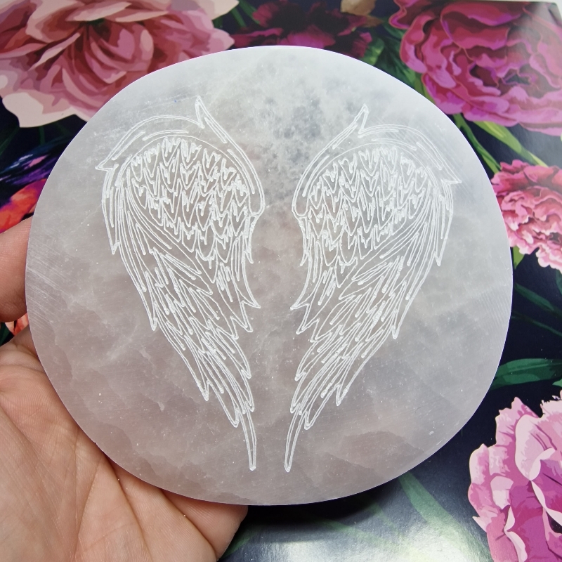 Selenit - podložka anjelské krídla (Ø 11 cm)