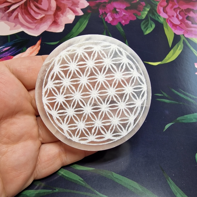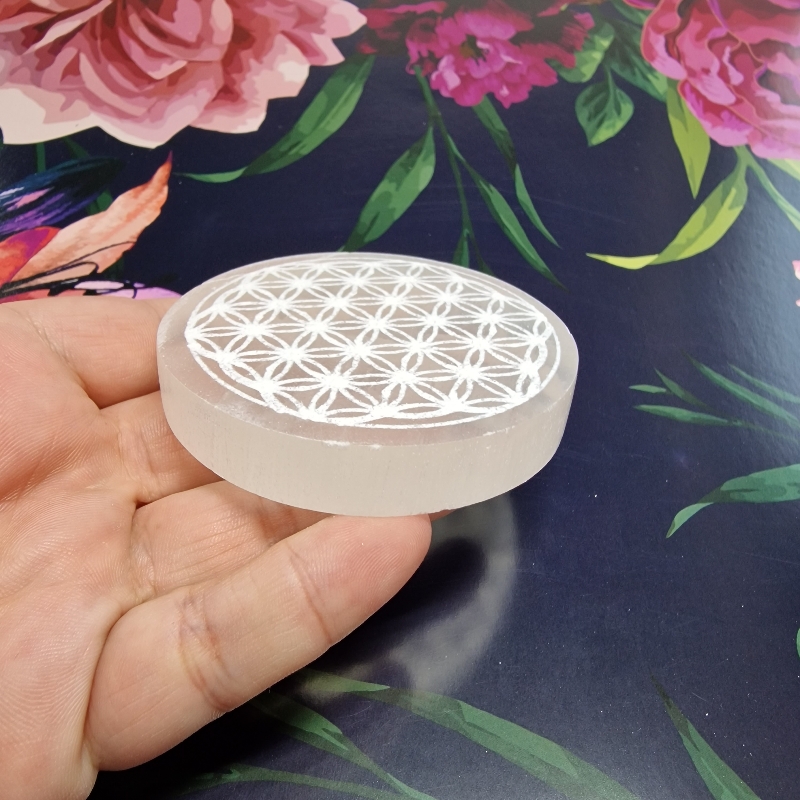 Selenit - podložka kvet života (Ø 6.5 cm)