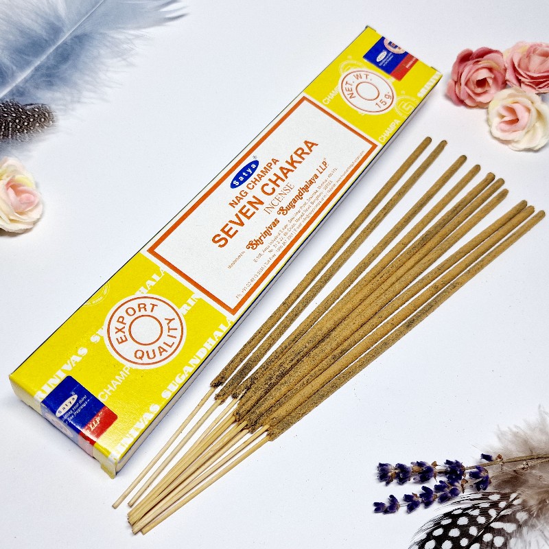 Ručne vyrábané SEVEN CHAKRA vonné tyčinky sú jedinečnou zmesou niekoľkých zložiek, ako sú vzácne byliny, kvety, extrakty z listov, aromatické rastliny, živice, éterické oleje a korenie. Ich hlboká mystifikujúca aróma vytvára atmosféru pozitívnej energie, ktorá znižuje stres a pomáha uvoľniť myseľ, telo i dušu. Prírodné zmesi ingrediencií zmiešaných v presných pomeroch uvoľňujú vôňu, ktorá zanechá každého človeka pokojného a uvoľneného. Môžu byť použité vo vašich domovoch, kanceláriách, obchodoch, pri každodennej modlitbe, meditácii alebo joge. Vonné tyčinky pôsobia tiež ako organický repelent, ktorý odháňa hmyz