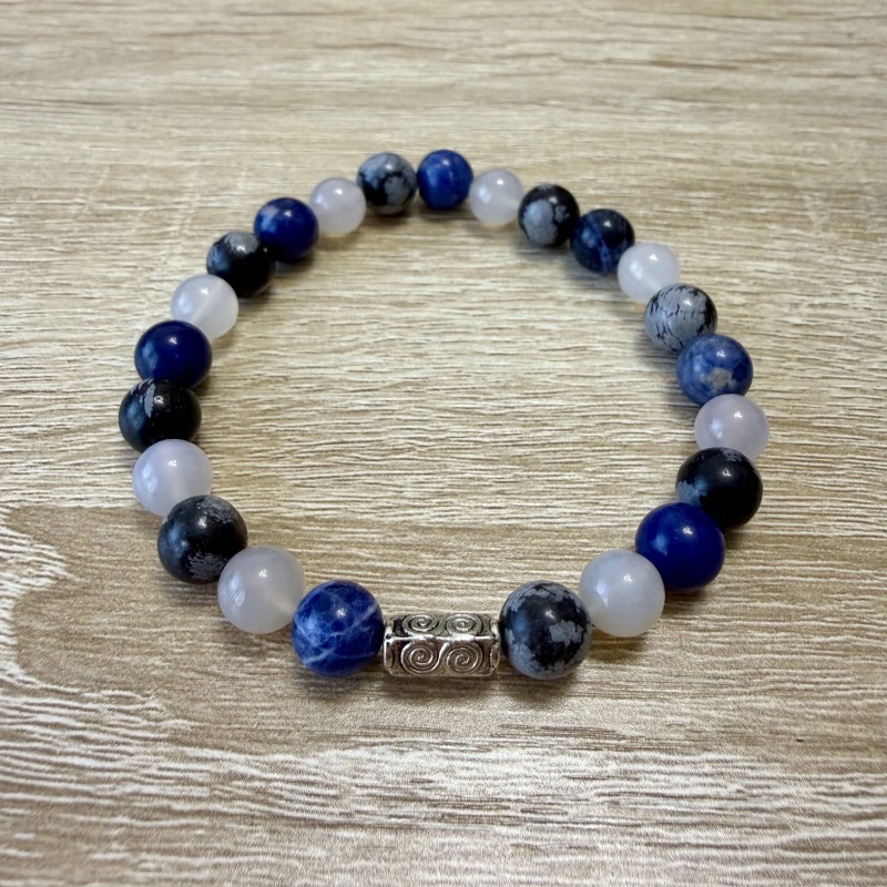 Sodalit + Chalcedón + Obsidián vločkový - PÁNSKY náramok (Ø gul. 8 mm)