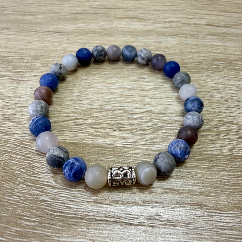 Sodalit (matný) + Achát botswana (matný) + Jaspis sivý (matný) - PÁNSKY náramok (Ø gul. 8 mm)